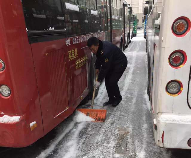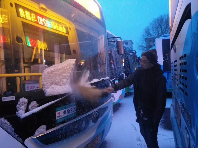 2019年2月15日、19日沈城兩次降雪,每一次的雨雪天氣的來襲,都是對全體一線公交人都是嚴峻的考驗。面對惡劣天氣,各單位多項舉措在雨雪中連夜奮戰(zhàn),干部職工上下一心,紛紛提前到崗,清理場區(qū)、站區(qū)、車輛積雪,做好出車前的各項例行檢查,全力保障市民安全出行。大家不畏嚴寒、齊心協(xié)力、配合默契,忙碌的身影在雪天里形成了一道最亮麗的風景線。