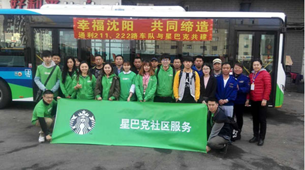 圖為: 211、222路車隊(duì)黨支部與星巴克開展“幸福沈陽,共同締造”主題共建活動。