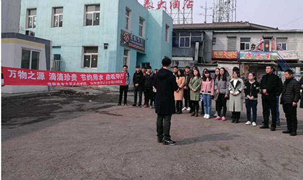 圖為:218路車隊(duì)黨支部與沈陽農(nóng)業(yè)大學(xué)水利學(xué)院在218路終點(diǎn)站大東門廣場開展宣傳《萬物之源 滴滴珍貴 節(jié)約用水 你我同行》為主題的倡議儀式,農(nóng)大水利學(xué)院的學(xué)生在大東門廣場與車隊(duì)職工共同宣傳節(jié)約用水,人人做起,從點(diǎn)滴開始。通過宣傳,讓大家了解節(jié)約用水的重要意義。