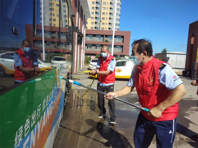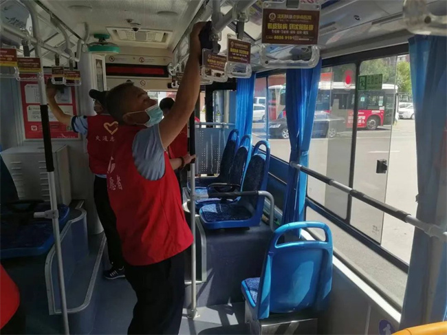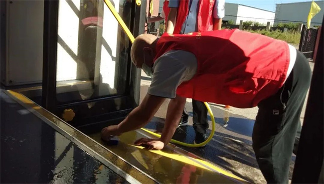 通運(yùn)公司志愿服務(wù)隊來到239路車隊,細(xì)化防控措施,在公交停車場對乘客候車區(qū)進(jìn)行不間斷消毒,同時協(xié)助公交駕駛員嚴(yán)格實行公交車返場后的集中消毒及車輛通風(fēng)、清潔等工作,特別是對車廂內(nèi)座椅、扶手等乘客易接觸的部位進(jìn)行深度消殺,做到不留死角、不留盲區(qū),全方位保障乘客出行安全。