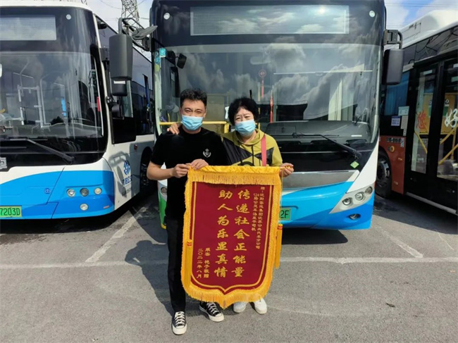 8月30日上午,該女乘客將一面印有“助人為樂顯精神,傳遞社會(huì)正能量”的錦旗送到了124車隊(duì),以表感激之情。