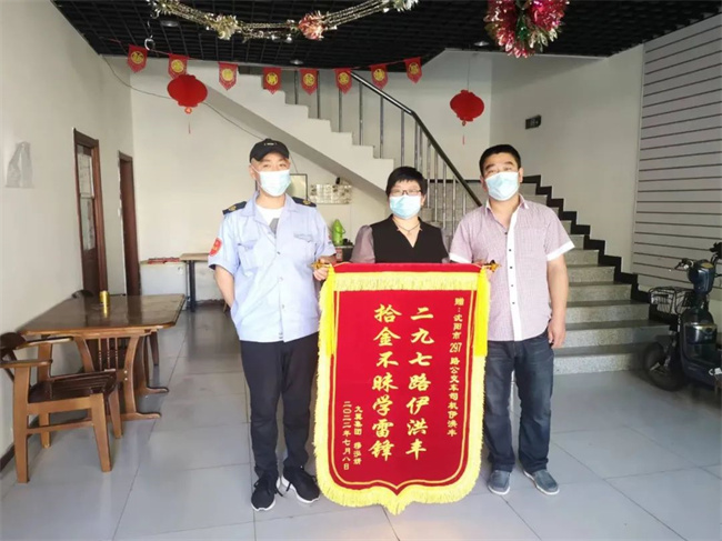 8月27日,一位女士帶著錦旗來到297路站務(wù)室向伊洪豐表示感謝。