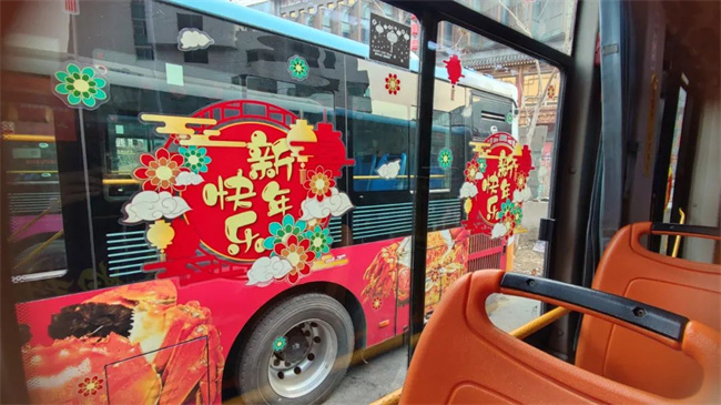 在辭舊迎新之際,通運(yùn)公司249路駕駛員王眾自費(fèi)購(gòu)買了小燈籠,拉花,窗花,福字等飾品來(lái)扮靚自己的愛(ài)車。被精心“打扮”后的車廂,年味十足。