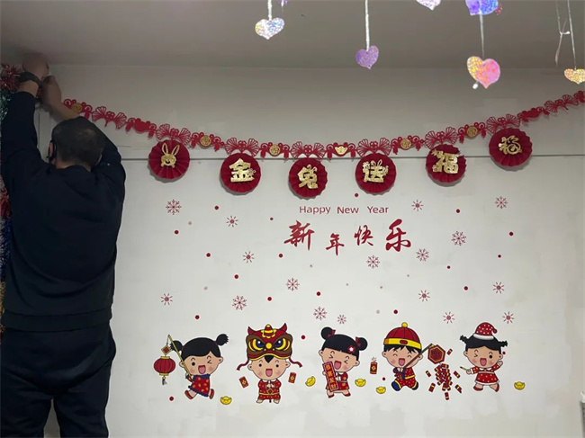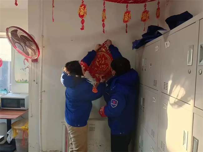 貼對聯(lián)、掛福字,通運公司駕駛員歡喜過大年。