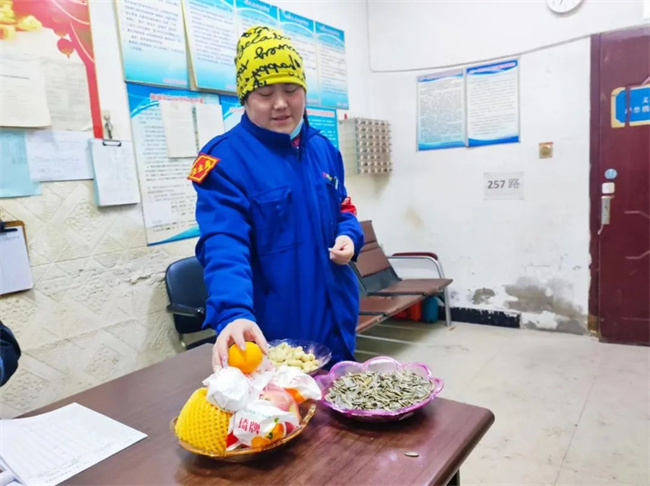來到105路車隊,一串串拉花、氣球、春聯(lián)和福字等年味氣息撲面而來,處處呈現(xiàn)出喜氣洋洋歡度春節(jié)的濃厚氛圍。