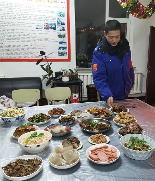除夕當(dāng)天,車隊為堅守崗位的職工精心準(zhǔn)備了“年夜飯”,大家歡聚一堂,共度新春佳節(jié)。