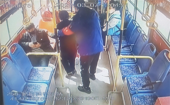 3月7日,賈清巖在艷粉新村始發(fā)站主動幫助老人將購物車抬上車,老人認(rèn)出了賈清巖,還沒等坐穩(wěn)就面帶笑容走向駕駛室向賈清巖表示誠摯的感謝,賈清巖連忙起身攙扶老人回到座位。
