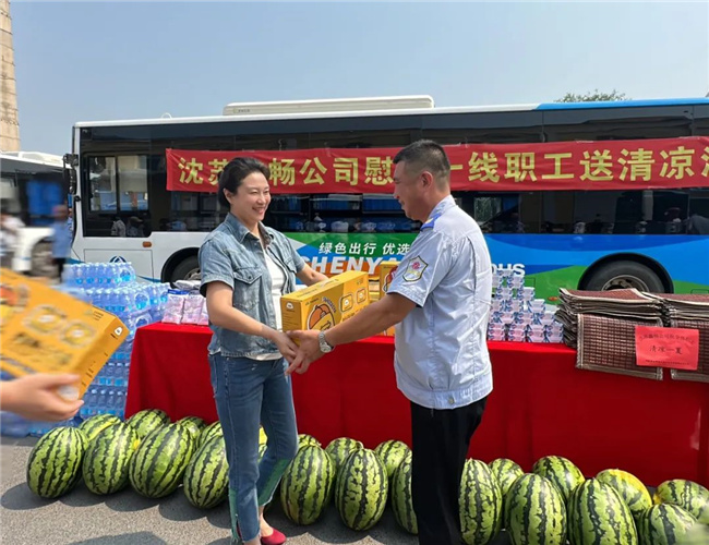 7月20日,沈北公司為職工們精心準(zhǔn)備了“夏日清涼包”,送去絲絲清涼,并叮囑各車隊時刻關(guān)注駕駛員身心狀態(tài),不斷強化安全運營和服務(wù)意識,確保職工心情舒暢、安全行車。