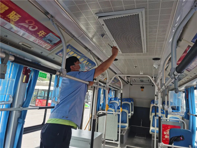 在209路公交場站,管理人員加大職工對車輛日常清潔工作的要求,并對運營車輛逐一檢查,督促駕駛員堅持每趟車運營結(jié)束將車廂內(nèi)外衛(wèi)生打掃干凈,特別是空調(diào)濾網(wǎng)的清潔工作。