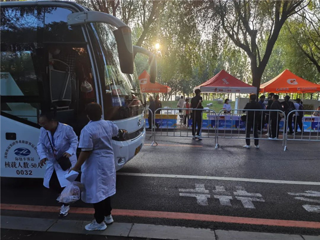 9月2日凌晨4時,華龍公司30臺旅游客車化身“工作人員接駁車”,踏著清晨的露珠分別趕赴沈陽工業(yè)大學(xué)、沈陽化工大學(xué)等各接站點,將志愿者及賽事保障人員運(yùn)送至沈陽經(jīng)濟(jì)技術(shù)開發(fā)區(qū)比賽地點,隨后將他們依次送至設(shè)置在賽道上的各個計時點、醫(yī)療物資保障點、維保站及補(bǔ)給點。