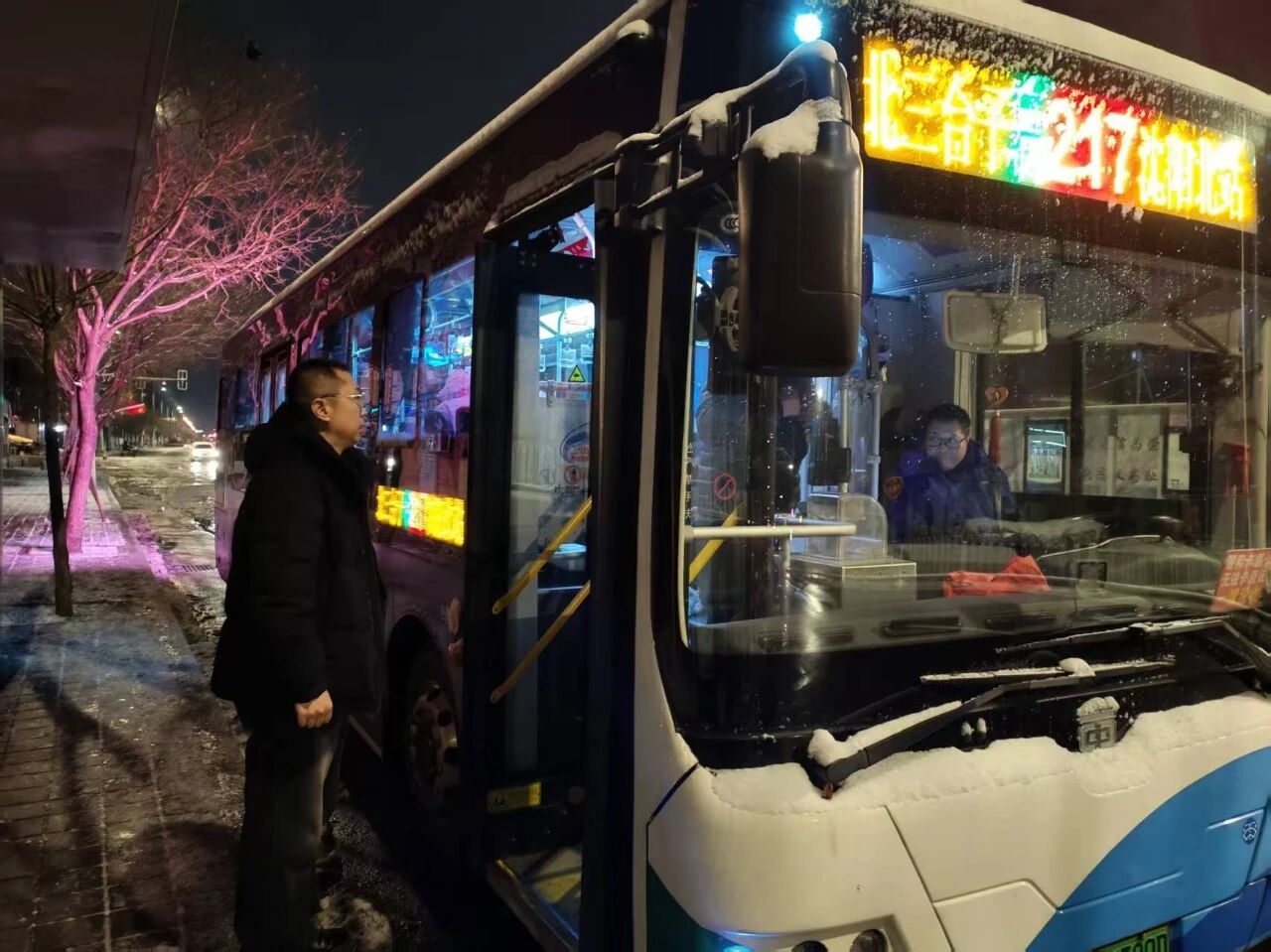 11月26日夜間,沈陽迎來今冬首場大范圍降雪天氣,給公交運(yùn)營工作帶來了極大挑戰(zhàn)。沈陽客運(yùn)集團(tuán)各運(yùn)營單位以雪為令、聞雪而動(dòng),第一時(shí)間啟動(dòng)特殊天氣應(yīng)急預(yù)案,從車輛保障、運(yùn)營服務(wù)、安全行車、清理積雪等多個(gè)方面做好各項(xiàng)工作,以飽滿的熱情全力保障公交線路正常運(yùn)營,為乘客提供溫暖舒適的乘車環(huán)境。