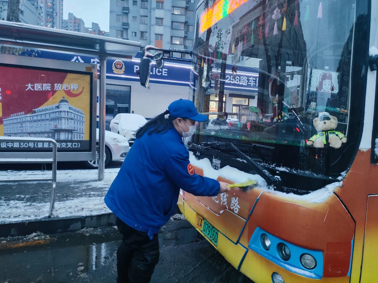 駕駛員在運(yùn)營過程中嚴(yán)格遵守雪天行車規(guī)范,謹(jǐn)慎控制車速,保持安全距離,并貼心提醒乘客扶穩(wěn)坐好。在途經(jīng)無護(hù)欄路段、人行橫道時(shí),主動(dòng)減速避讓,禮讓行人,展現(xiàn)出專業(yè)的駕駛素養(yǎng)與暖心的服務(wù)意識(shí)。同時(shí),他們及時(shí)將路面雪情、通行條件等信息實(shí)時(shí)反饋至調(diào)度中心,為靈活調(diào)整運(yùn)營方案、科學(xué)調(diào)配運(yùn)力提供了重要的信息支撐。
