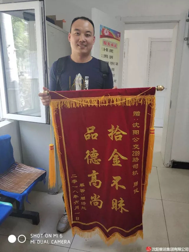 2018年6月2日上午,通利公司289路車隊辦公室來了一名男乘客,手拿錦旗滿臉笑容的找到車隊殷隊長,感謝車隊幫忙找回重要的失物,使物品完好無損,現金、證件等無一損失,感謝拾金不昧的90后289路駕駛員周健。