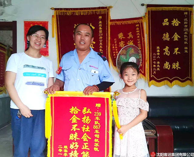 8月23日上午,乘客李女士帶著女兒將一面錦旗送到康利公司239車(chē)隊(duì),并要當(dāng)面感謝好心駕駛員蘇凱。